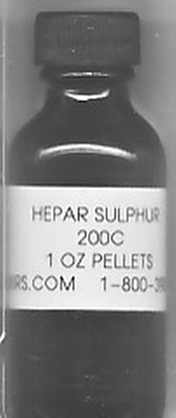 Hepar Sulphur, also known as Hepar Sulphuris Calcarea, Now in higher 200C potency. Hepar Sulphur supports the liver. The liver helps in clearing the body of toxicity. Use for colds, sore throats, coughs. Coughs and sore throats where sensation that something feels stuck in the throat.